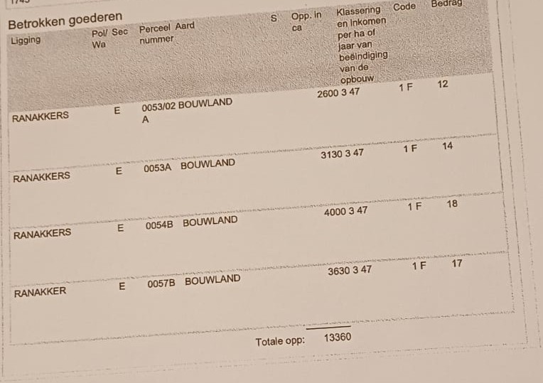 Bouwland in Ranakkers Opwijk Vier naburige percelen 13360 m² vrij van huur en pacht.