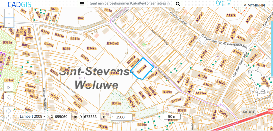 Kadastrale ligging : 23078 Zaventem 5; Afd. St-Stevens-Woluwe; Sectie B Perceel 0345×2