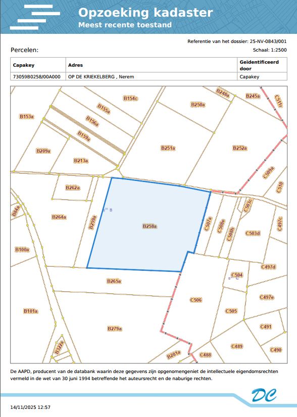 Een perceel landbouwgrond gelegen Op de Kriekelberg, gekadastreerd volgens recent kadastraal uittreksel sectie B, nummer 0258AP0000, met een oppervlakte van twee hectare negenenzeventig are vijftig centiare (2 ha 79 a 50 ca).