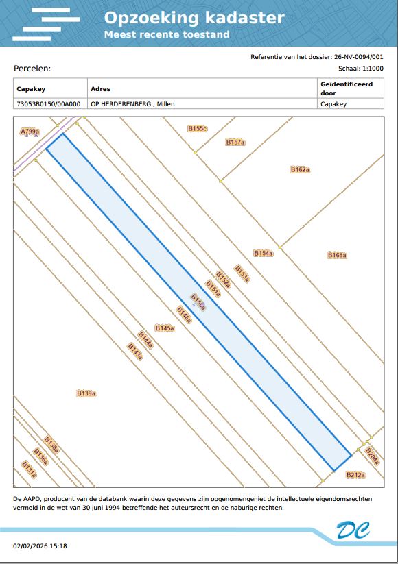 Een perceel landbouwgrond gelegen Op Herderenberg, gekadastreerd volgens recent kadastraal uittreksel sectie B, nummer 0150AP0000, met een oppervlakte van éénenveertig are zestig centiare (41 a 60 ca).