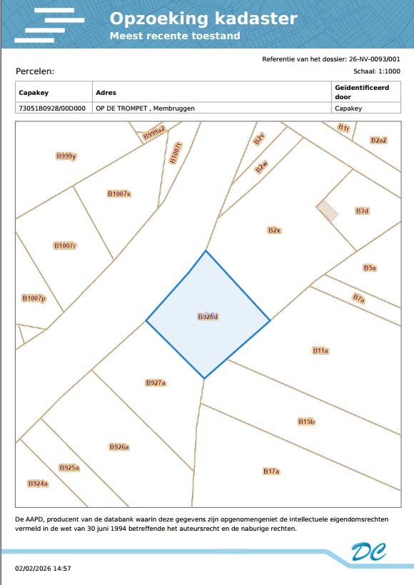 Een perceel landbouwgrond gelegen Op de Trompet, gekadastreerd volgens recent kadastraal uittreksel sectie B, nummer 0928DP0000, met een oppervlakte van éénentwintig are dertien centiare (21 a 13 ca).