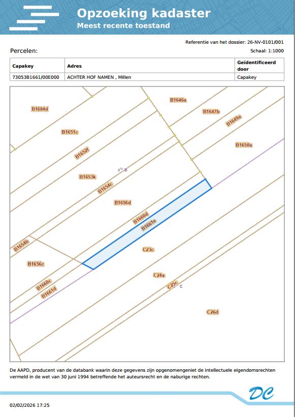 1. Een perceel landbouwgrond gelegen Achter Hof Namen, gekadastreerd volgens recent kadastraal uittreksel sectie B, nummer 1661DP0000, met een oppervlakte van zes are dertien centiare (6 a 13 ca).